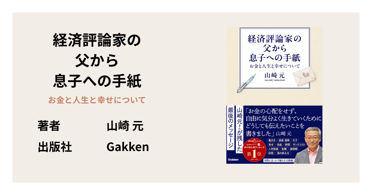 本書は、経済評論家・山崎元さんが、息子さん、そしてその同世代の若者に向けて書いた一冊です。