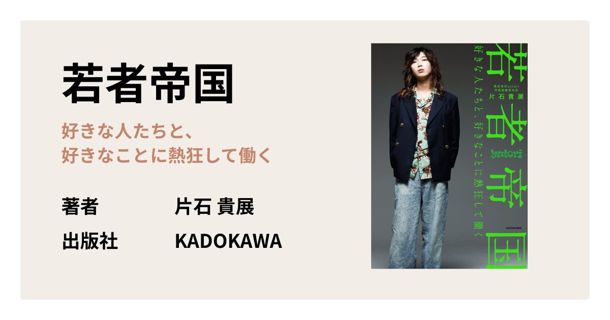 本書では、株式会社yutoriの社長である片石貴展氏の価値観や思考、そしてビジョンに触れることができます。片石氏は、「若い世代の『好き』と『熱狂』が溢れ、それを商売にし続ける」可能にする場としての「若者帝国」を築き、発展させるという構想を描いています。